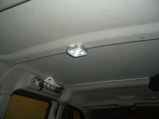 tambien tengo una cortina para separar la parte de la cabina de la cama para que si duermes en algun lugar muy concurrido no se note tanto que estas ahi, junto con los isotermos cosidos por la abuela. con todo esto puedes dormir tranquilo sin que entre luz y sin que te vean, y tambien instale unos leds a pilas para tener luz dentro sin tener que usar la de la furgo.