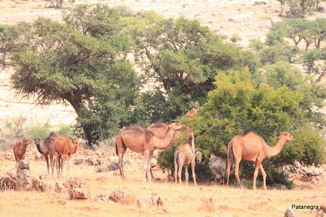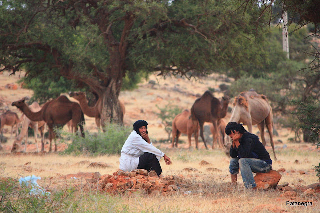 A las 10 de la mañana ya teníamos 42ºC !!!!; aquello era difícil de sopportar y veías a a gente vestida hasta las cejas y la sensacion de calor aumentaba... paramos bajo un argán bien hermoso para echar unas cervecotas a media mañana; a los 12 ya el calor volvía a ponernos a prueba... y estando junto a los vehículos que desprendían el suyo propio era el acabose; literalmente como si te enchufan un secador sobre la piel.