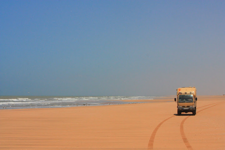 Rodando por la playa, camino de L'Ayounne: