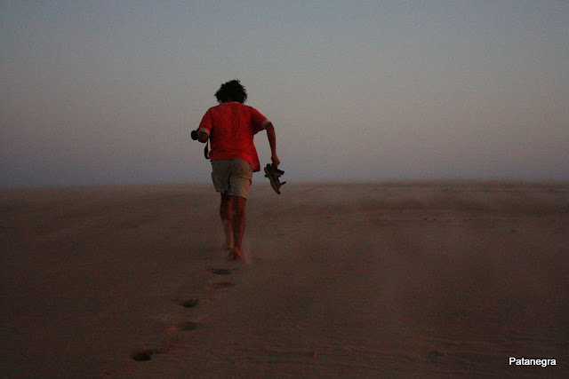 Ese día, y el siguiente, por la dirección del viento, los kitesurferos "habían volado" la mayoría y se habían bajado al centro de la bahía ese día, y al día siguiente más abajo aún, a la duna blanca  :o